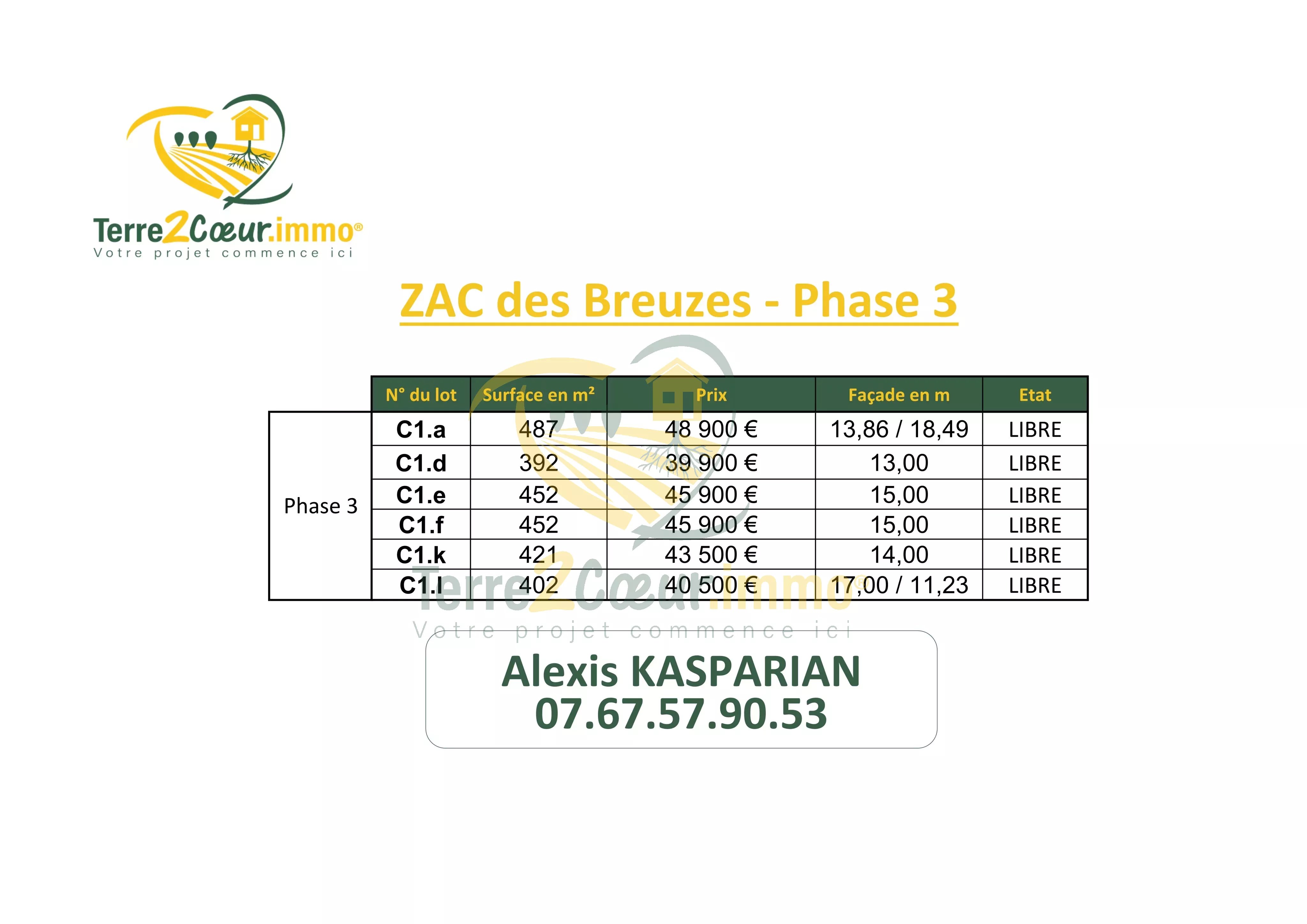 📞 Pour découvrir la grille des prix, recevoir un plan de la ZAC ou organiser une visite, contactez Alexis, votre conseiller foncier.